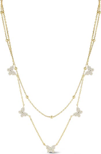Bring a touch of whimsy to your everyday ensemble with this layered chain necklace that's adorned with butterfly-shaped charms.