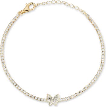 Brilliant CZ stones and a charming butterfly define this timeless tennis bracelet.