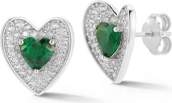 Pavé set CZ stones envelope a colorful center stone that defines this elevated double-heart stud earrings.
