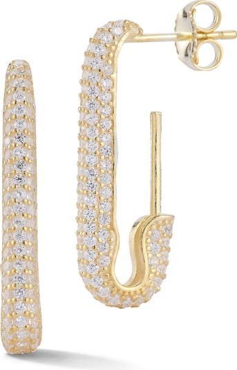 Pavé cubic-zirconia stones shimmer and shine against these polished earrings that are shaped like safety pins.