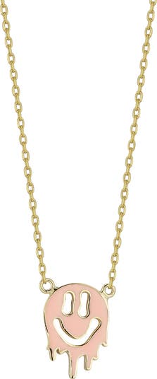 A colorful enamel smiley face adds modern appeal to a slim-chain necklace plated in gleaming 14-karat gold.
