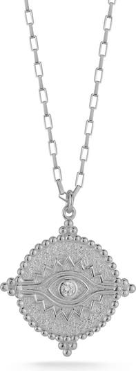 Ward off misfortune with this elegant necklace that suspends a cubic-zirconia centered evil-eye pendant.
