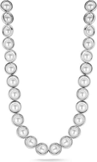 Lustrous faux pearls trace this glossy necklace that brings elegant shine to your day or night-out looks.