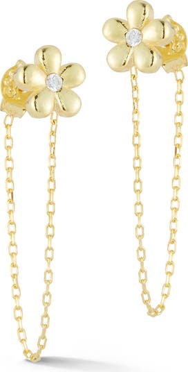 A pair of chain flower shaped earrings with bezel set cubic zirconias offer a timeless, sophisticated style.