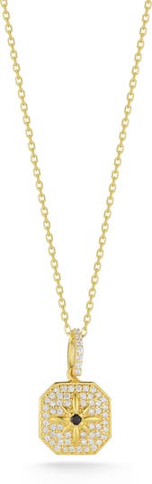 Tiny, prong set cubic zirconias add a glistening accent for a gold vermeil necklace with a flower shaped pendant.