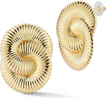 Ribbed detailing catches light at each and every angle in these knotted statement earrings secured with a post back.