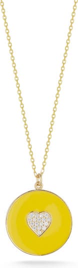 A pavé cubic-zirconia heart brings sweet sparkle to this vibrant enamel disc pendant necklace crafted from sterling silver and plated in warm 14-karat gold.
