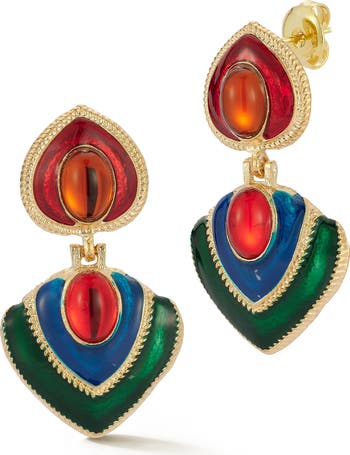 Add a bold pop of color to your lobes for your evening ensembles with these earrings suspending spade-shaped drops.