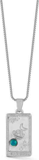 Bring celestial shine to your everyday looks with this box-chain necklace suspending a tag pendant inset with a pavé planet and cubic zirconia stars.