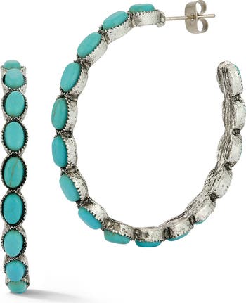 Oval-shaped turquoise stones bring a playful vibe to these hoop earrings that are perfect for daytime ensembles
