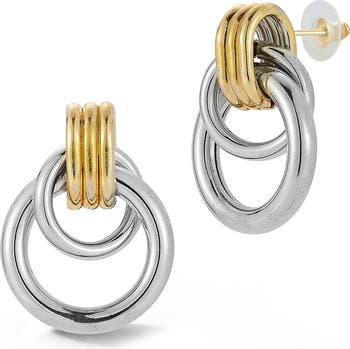 Two-Tone Doorknocker Drop Earrings