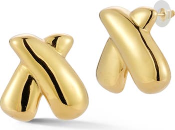Crossed designs lend captivating light to these elegant stud earrings that are finished in a polished metallic plate.