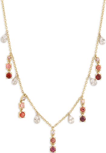 Tiny semiprecious-stones and diamonds twinkle around this delicate necklace made from warm 14-karat gold.