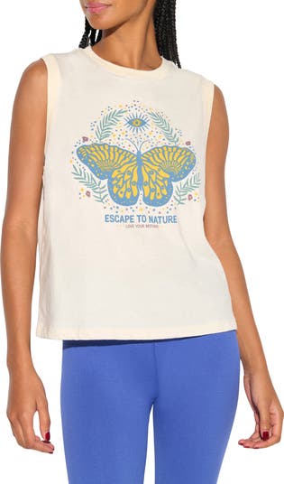 Escape to nature in this lightweight, relaxed cotton tank featuring a mystical moth graphic.