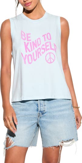 Let this lightweight, relaxed cotton tank remind you to be kind to your self with its faded, groovy graphic.