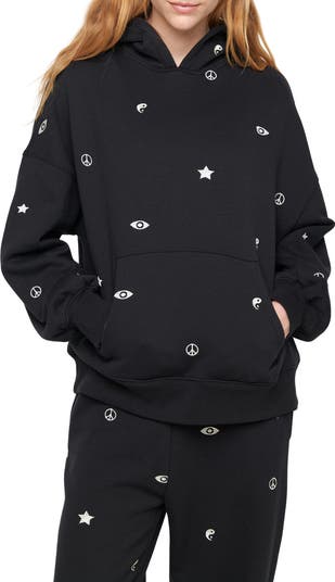 Invite good vibes to your day in these soft cotton-blend fleece sweatpants sprinkled with dainty embroidery and mindful graphic prints.