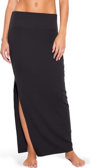 A slit at the side shows off a bit of leg in this fitted ribbed maxi skirt made from a soft cotton and modal blend.