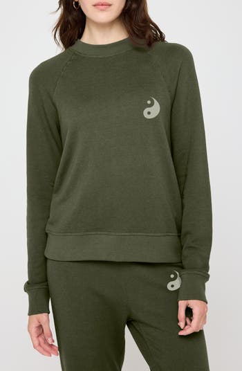 Find your balance in this yin-yang graphic sweatshirt cut from a soft cotton-modal blend and framed by sporty raglan sleeves.