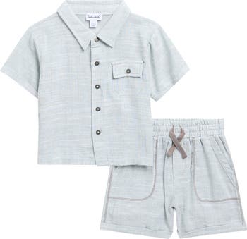 Baby will channel breezy boardwalk vibes in this fresh linen-kissed set featuring a boxy button-up and matching drawstring shorts.