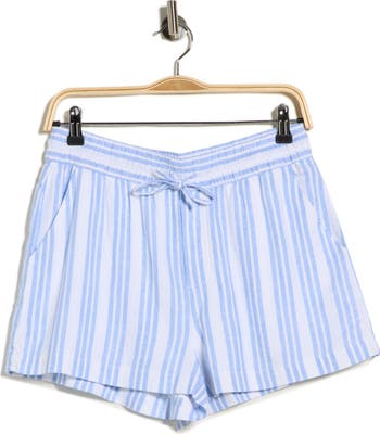 Sunny days were made for these linen-blend shorts striped in blue and topped with a drawstring waist.