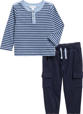 Baby will roam around and play with ease in this set featuring a striped henley paired with coordinating cargo-styled joggers.