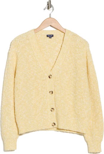 Easy to layer over any ensemble, this button-front cardigan is knit from a soft blend of marled cotton yarns.