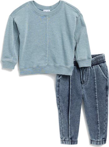 Acid-washed denim joggers have baby channeling a Y2K aesthetic in this cuddly cotton-blend set complete with a coordinating sweatshirt for comfort on cooler days.
