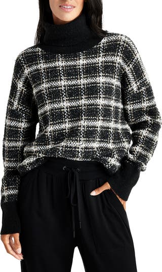Cozy and polished, this woolly turtleneck is knit in allover checks with slouchy dropped shoulders.