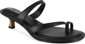 An of-the-moment kitten heel ensures this strappy faux-leather sandal makes a perfect choice for upcoming occasions.