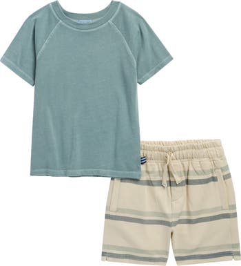 A casual T-shirt and striped shorts set made from a soft cotton blend is a perfect way to keep your kiddo feeling comfortable while looking stylish.