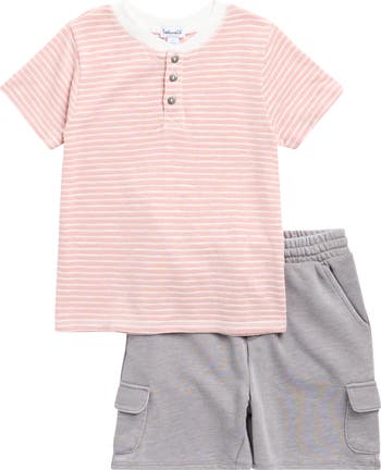 Playground adventures await in this comfy set that features a striped short-sleeve henley with cargo shorts.