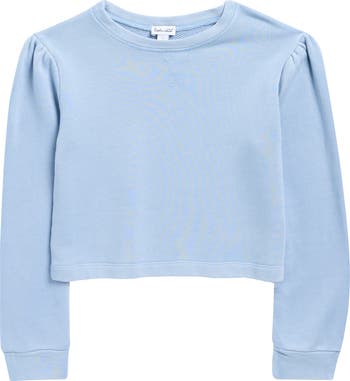 A cotton-infused terry blend brings cozy comfort to this kid-approved sweatshirt styled with slightly puffed sleeves.
