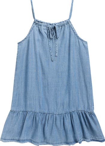 Lightweight denim fabric has your kiddo looking cute while feeling comfortable in this dress perfect for any activity, whether for classroom days or weekend outings.