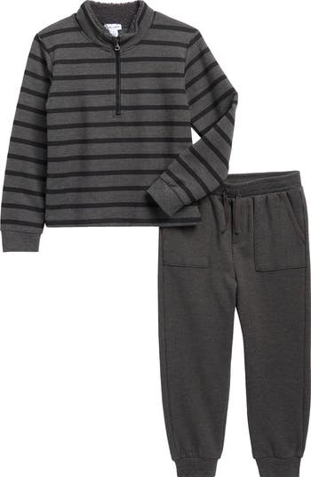 Ultrasoft fleece lining helps keep them warm in this quarter-zip sweatshirt set paired with joggers.