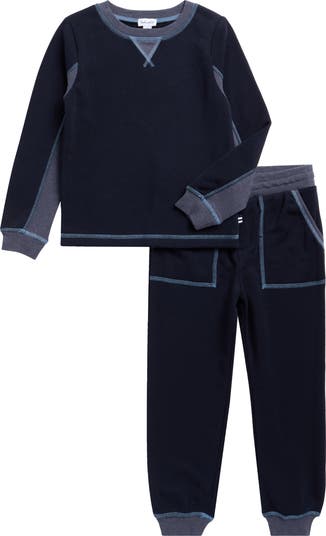 They'll stay cozy in this cute set featuring a sweatshirt and joggers crafted from soft fabric and finished with contrasting accents.