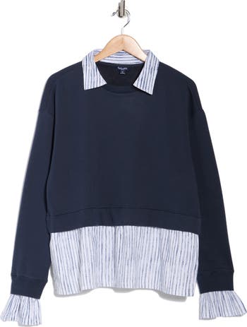 Effortlessly achieve the layered aesthetic with this twofer-style top featuring a collared cotton-poplin shirt underneath a cropped French terry sweatshirt.