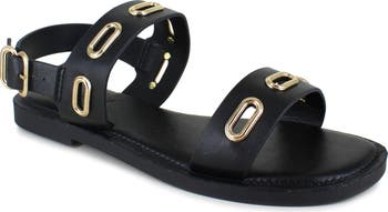 Geometric grommets detail the smooth straps of a sleek sandal grounded by a cushion-comfort footbed.