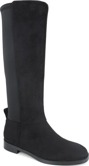 Elevate your look with this soft faux-suede boot fashioned with a stretchy neoprene panel along the shaft for easy-wear comfort.