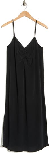 Slinky, drapey silk brings a luxurious feel to this slipdress lightly shaped by ruching at the bust.
