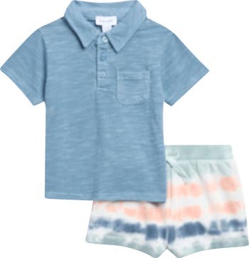 Baby can conquer the playground in this coordinating polo and shorts set made from a comfy cotton blend that stretches with their every move.