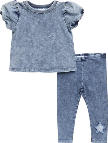 Baby will be dressed in a flash in this set featuring a puff-sleeve top paired with star-appliquéd leggings.