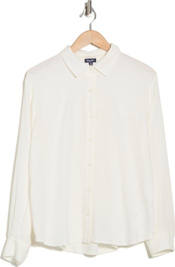 Refresh your workday essentials with this lightweight linen-kissed button-up framed by a point collar and long sleeves.