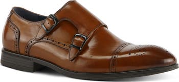 Plush cushioning softens your step in an elegant loafer topped with a double-buckle monk strap and delicate brouging detail.