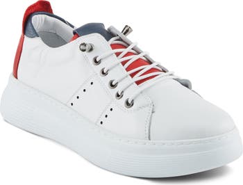 Elastic laces give slip-on ease to this colorblocked sneaker topped and lined with leather.