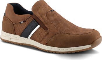This slip-on sneaker with a perforated upper features a cushioned insole and shock-absorbing sole.