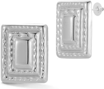 Adorn your lobes with these statement square stud earrings rich with texture.