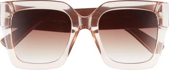 Shade your eyes in bold style with tinted transparent sunglasses fashioned in a sleek square silhouette.
