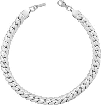 big curb chain with nice weight and a beautiful silver color. the links are flat so they dont look awkward on my ankles. Love it !