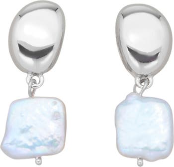 Square freshwater pearl anchor these polished drop earrings with surprising shape.