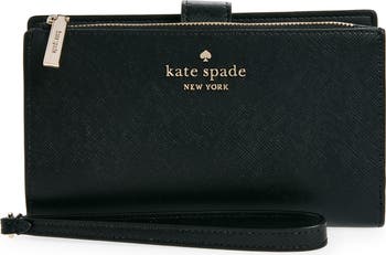 A grained texture distinguishes this slim wristlet that has a spot for cards, cash and your phone, making it a versatile go-to.